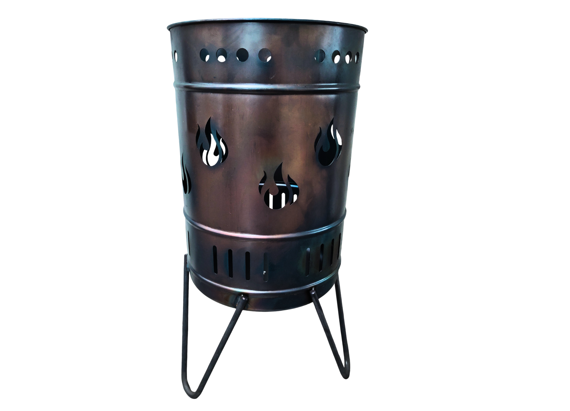 Handgefertigter Feuerkorb im modernen Design mit Motiv Kleine Flammen mit einem Füllvolumen von ca. 50 l (ca. 75 cm Höhe, Durchmesser 35 cm).