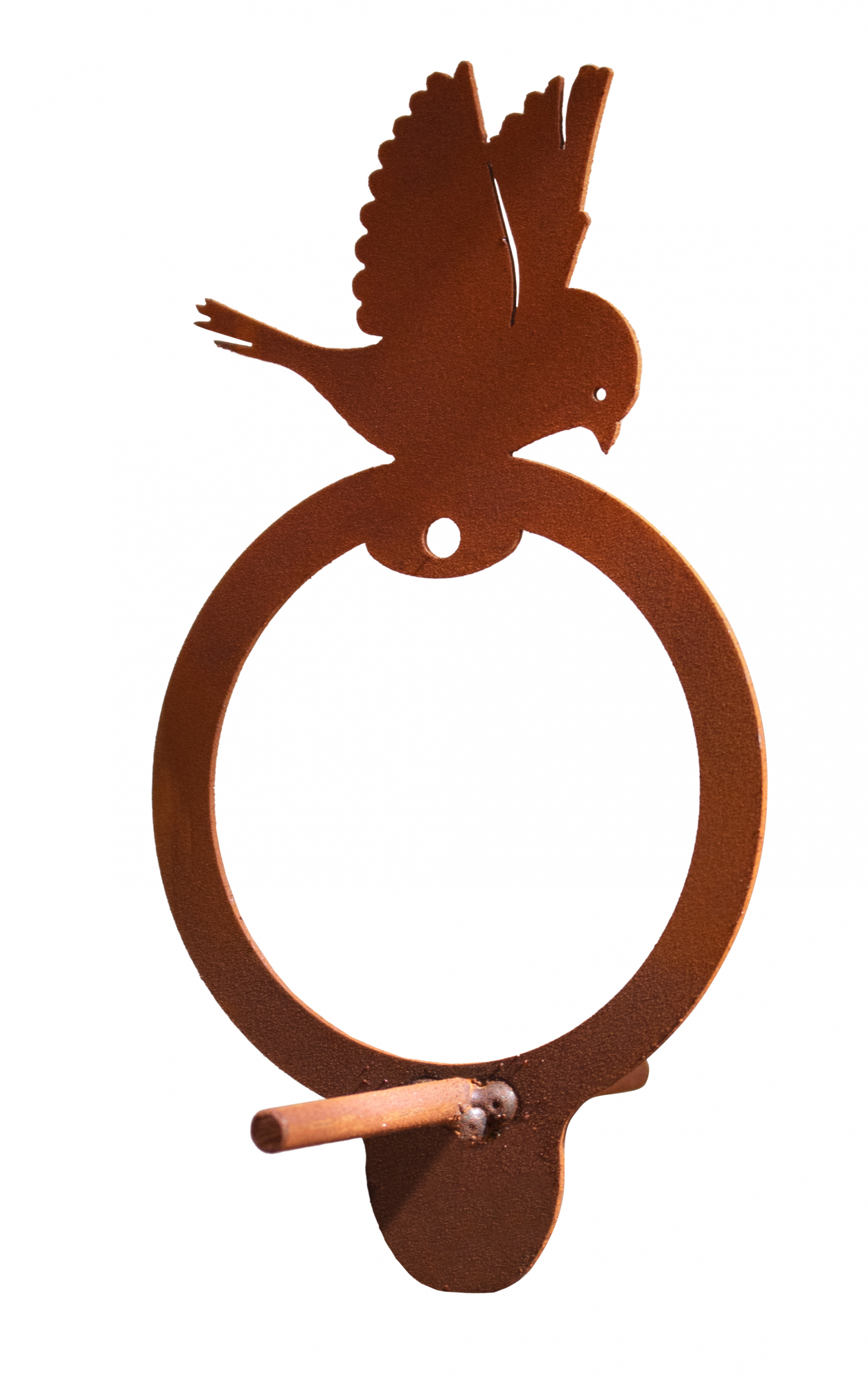 Zum Aufhängen der Meisenknödel bieten wir eine dekorative Aufhängung mit Anflugsteg in Rostoptik. Die Aufhängung kann beispielsweise wunderbar im Baum oder an einen Strauch aufgehängt werden.