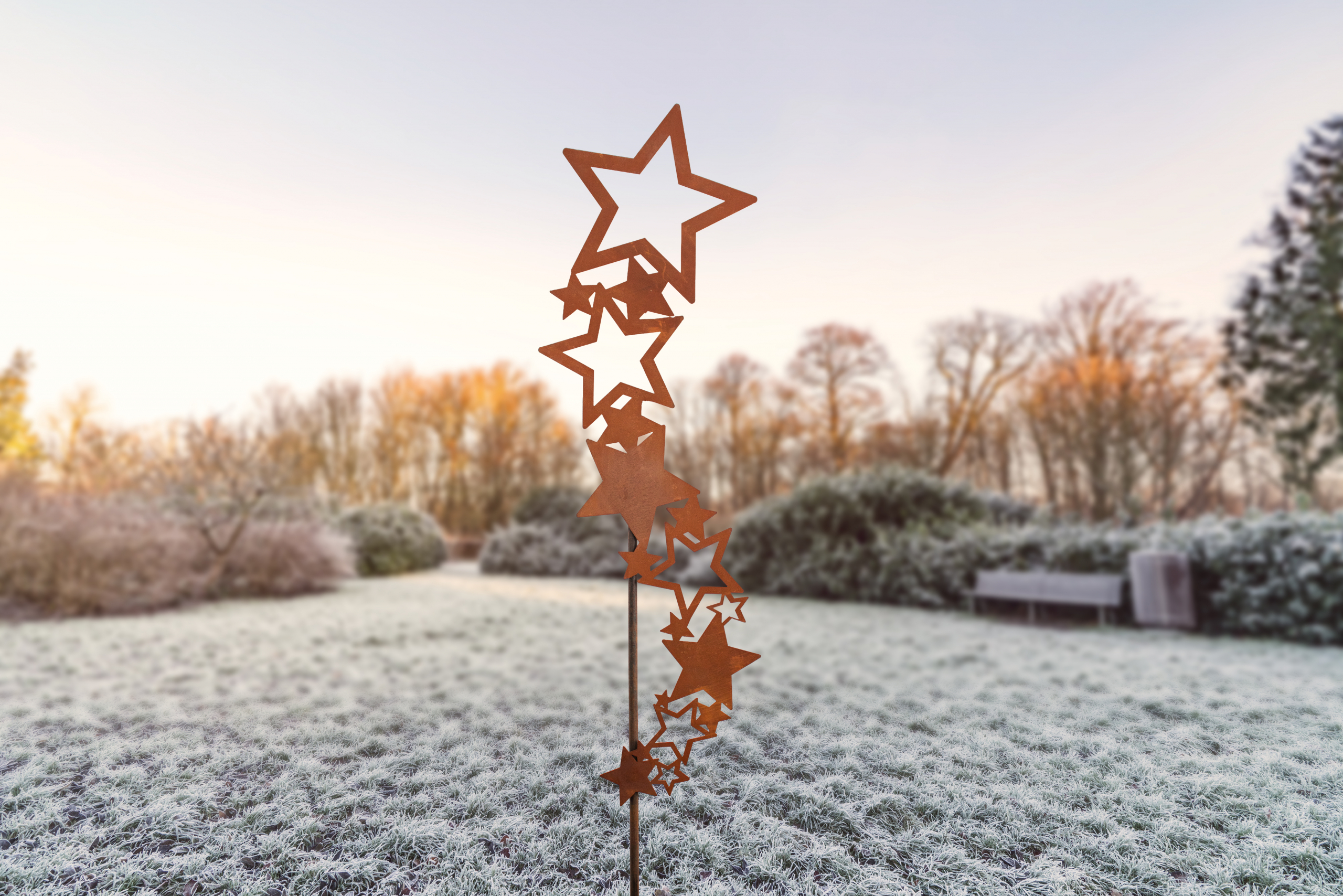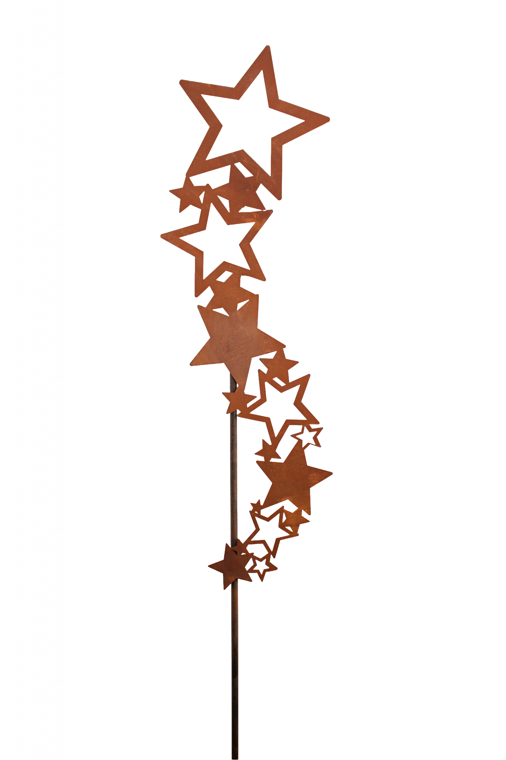 Der  Gartenstab „Sternenfall“ besteht aus vielen verschiedenen Sternen in unterschiedlichen Größen, die an einen 100 cm langen Stab befestigt sind. Der Stab lässt sich einfach in die Erde stecken.