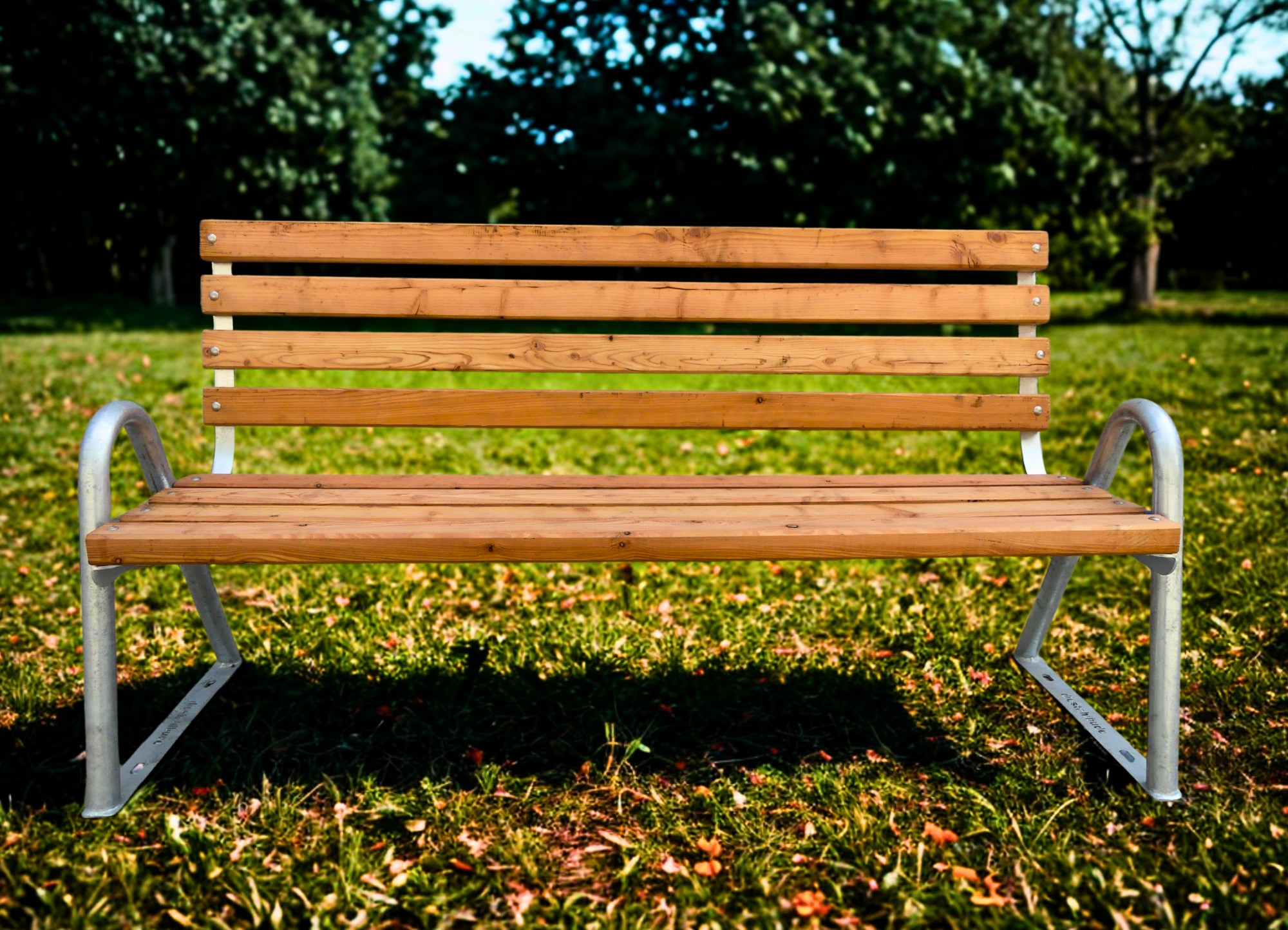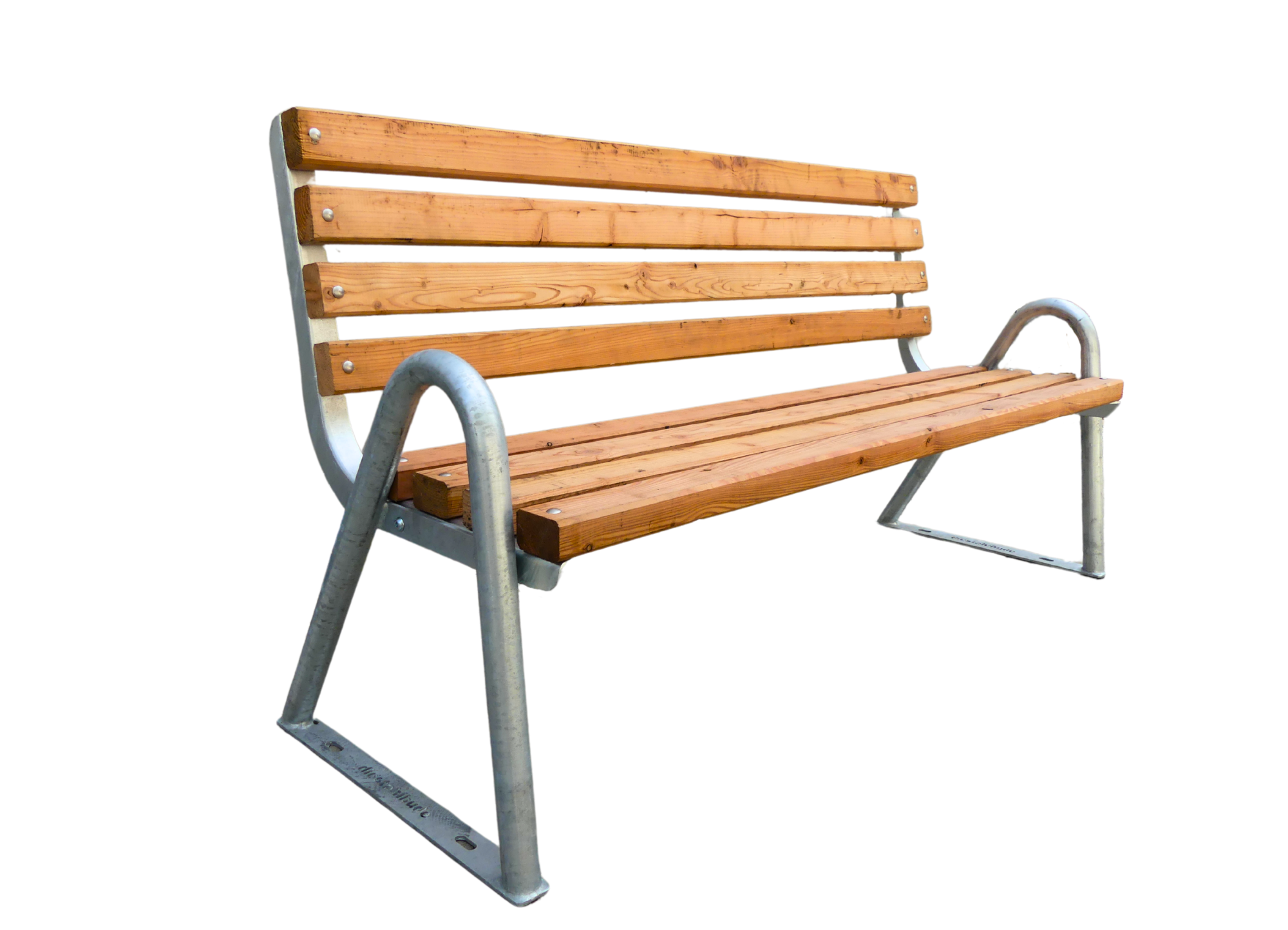 Unsere schöne und robuste Holzbank lädt zum Verweilen und Pause machen ein. Die Rückenlehne und die Sitzfläche bestehen aus Holz, welches wahlweise von der Kiefer oder der Nordischen Kiefer stammt. Die Armlehnen sind aus verzinktem Rundrohr gefertigt.