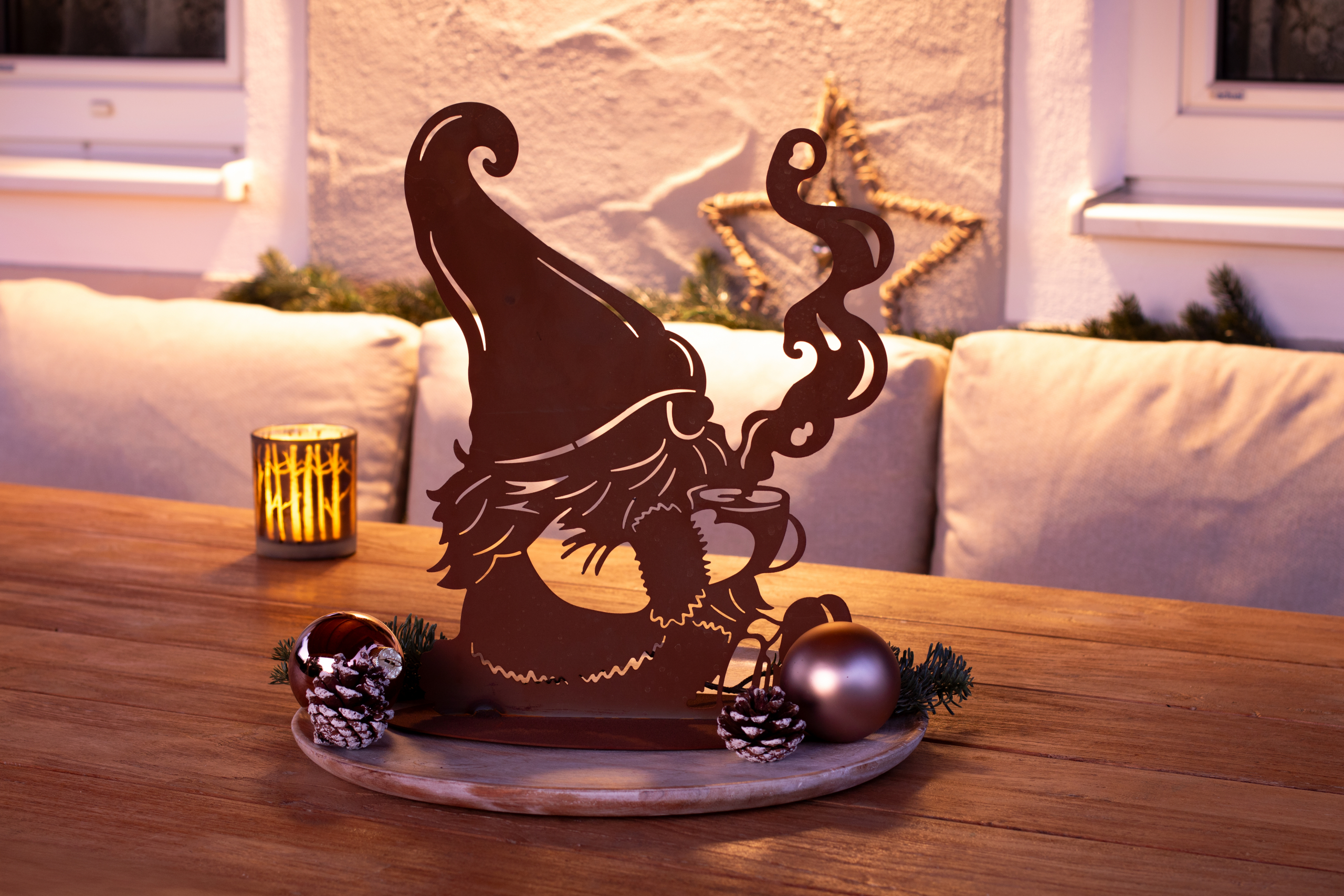 Der Aufsteller in Rostoptik ist eine wunderbare Dekoration für drinnen oder draußen.